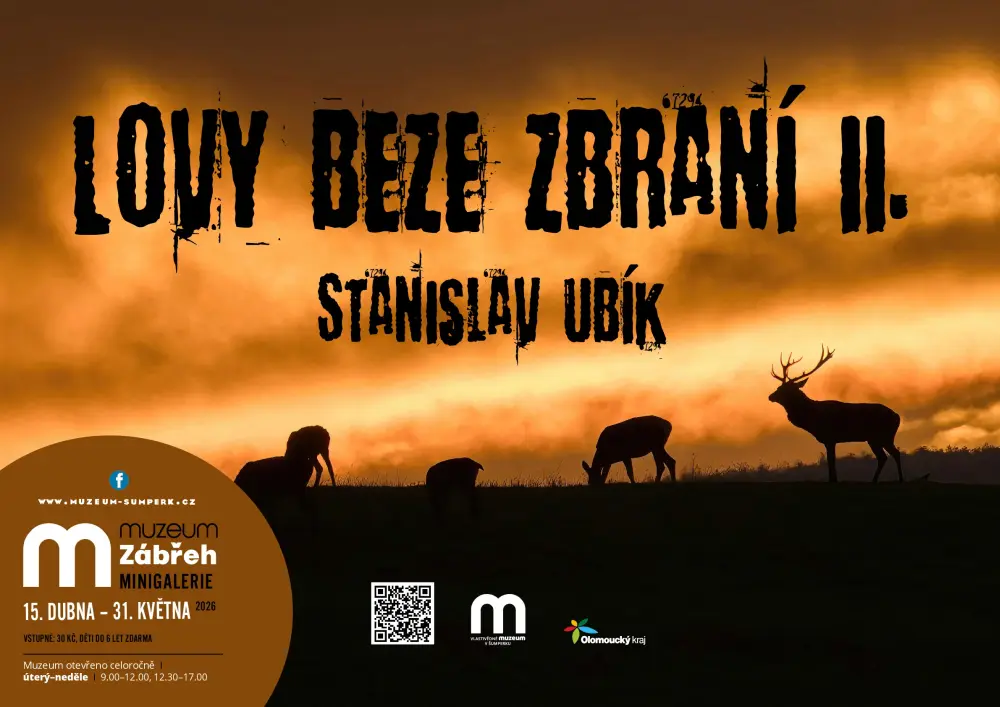 Existují lovy, při kterých nic neumírá. Lovy, při nichž místo pušky držíte fotoaparát a místo trofeje si odnášíte vzpomínku. Tato výstava zachycuje setkání s volně žijícími zvířaty Jeseníků (ale nejen jich) v lesích, na loukách, u rybníků i v tichých zákoutích krajiny, kam noha člověka vstoupí jen zřídka. Každý snímek vznikl s respektem, trpělivostí a pokorou. Nejde o inscenované okamžiky, ale o skutečný život, takový, jaký plyne bez našeho zásahu. Zvířata nejsou objektem, ale partnery tohoto tichého dialogu. Fotograf je zde pouze hostem – pozorovatelem, který čeká, naslouchá a učí se vnímat rytmus přírody. „Lovy beze zbraní“ jsou o soustředění, o schopnosti zpomalit a splynout s okolím. O chvílích, kdy se na okamžik setkají dva pohledy – lidský a divoký. O respektu k životu, který tu byl dávno před námi a který tu, doufejme, zůstane i po nás. Přijďte na výstavu a zažijte mezi fotografiemi obdobné chvíle ztišení, jaké pociťuje při jejich pořizování sám autor. Podívejte se zblízka na svět, který běžně jen míjíte. Možná zjistíte, že největší úlovky nejsou ty, které držíme v rukou, ale ty, které si odnášíme v srdci.